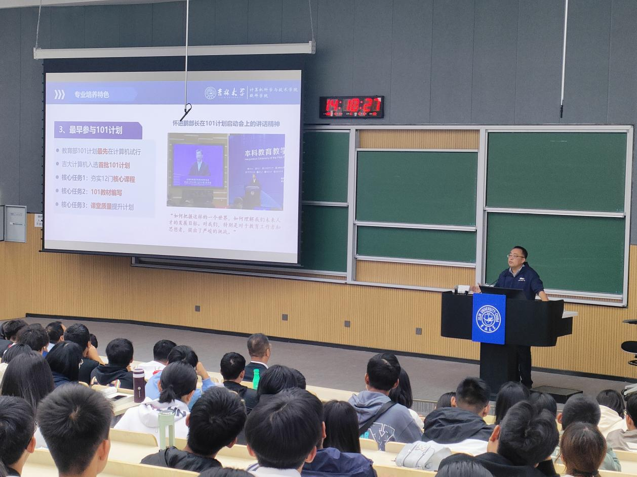 首先,由张永刚副经理介绍公司的本科专业设置和培养目标,详细介绍了2024版培养方案的修订过程和具体课程设置,从顶层设计、培养特色等方面逐层推进,让各位同学对2024版培养方案有了深入的了解。接下来,叶育鑫老师、陈娟老师、王峰老师、齐红老师分别就唐敖庆理科试验班、计算机科学与技术专业,网络安全专业,物联网工程专业,为计院的新生讲解了不同专业的学分设置、应具备的各项能力等内容,引发员工深入思考。谷方明老师、刘淼老师、曲冠南老师则分别为同学们介绍中国高校计算机系列赛事,老员工程序设计竞赛及龙芯杯CPU设计大赛的能力要求及提升途径。 一整个下午的精彩分享让新生大开眼界,不时能看到有同学举起手机拍照,拿出纸笔书写,记录重要的信息。公司将继续秉承“求实创新,励志图强”的校训,为新生们提供全方位的支持和指导,帮助他们在计算机科学的道路上不断前行,实现自己的理想!
